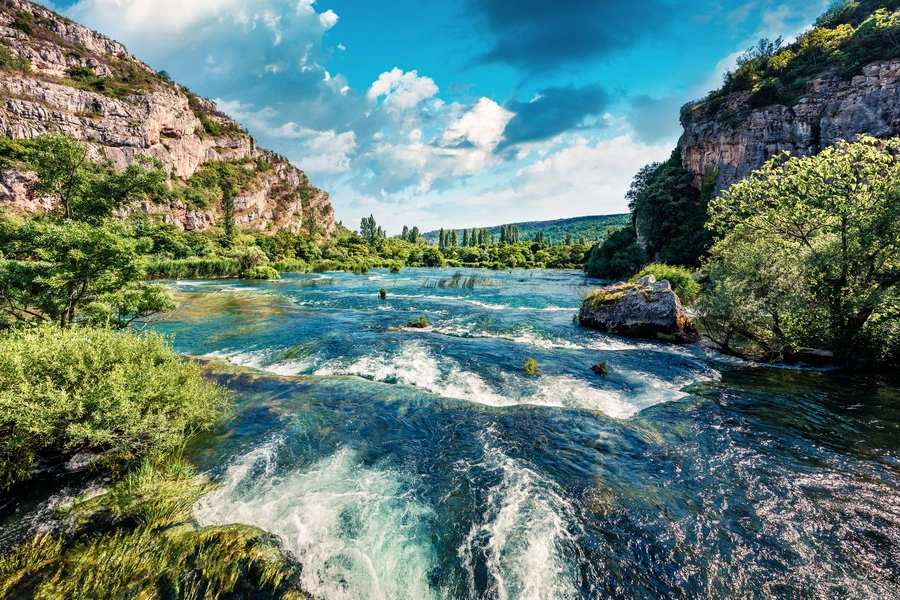 First, discover the majestic Roški slap waterfall, where cascading waters form enchanting Necklaces of tufa terraces. Then, explore Skradinski buk, the park’s crown jewel, with its powerful falls and wooden boardwalks winding through vibrant greenery.