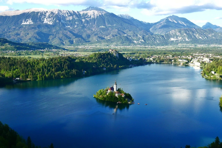 Soon the road climbs toward postcard-perfect Lake Bled. Medieval Bled Castle clings to a cliff above mirror-still water, snow-dusted Alps rise behind, and a tiny church crowns the lone island. While absorbing the view, reward yourself with a slice of creamy kremšnita, the vanilla-custard cake locals love.